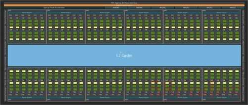 完整的AD102核心共有18432个CUDA,其中包含12个图形处理集群(GPCs), 72个纹理处理集群(TPCs), 144个流式多处理器(SMs)。144个第三代光追核心(RT Cores)、576个第四代张量核心(Tensor Cores)。另外可以看到Boost频率也从1.9GHz猛增到了2.5GHz。另外一点在架构图上没有体现的是,AD102核心还包含288个FP64双精度浮点核心(每SM 2个),用来确保FP64代码正确处理,包括FP64张量核心代码。通常来讲,单精度浮点运算会用于深度学习模型训练,而双精度浮点运算则用于数值模拟工作。通常游戏卡都会砍掉FP64,这既节省了成本,又对游戏本身没有影响。而专业卡都保留有FP64,目的就是为了精度更高训练与计算。此次资料中只提到了AD102核心搭载了288个FP64,尚不知道后续的推出的产品有无变更。