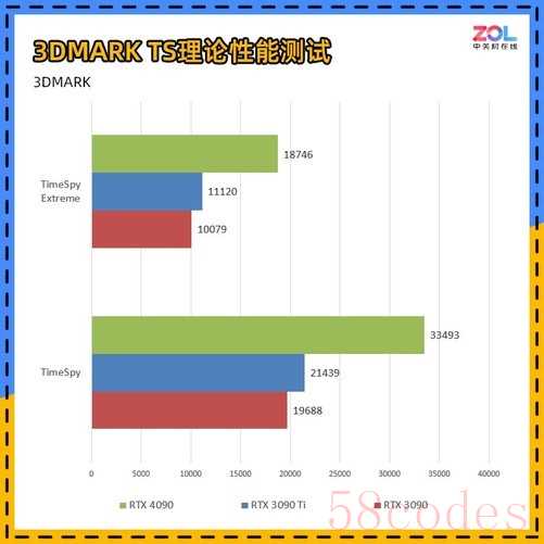 而在针对DX12环境下的Time Spy和Time Spy Extreme测试中,GeForce RTX 4090相较GeForce RTX 3090 Ti的提升分别为:TS提升56%;TSE提升69%,综合下来约为63%。