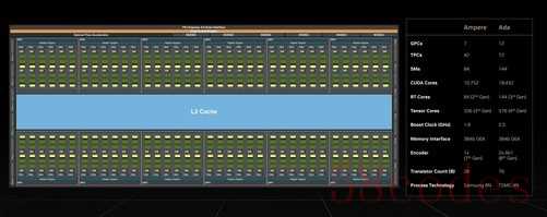 1842年到1843年花了9个月时间翻译了Babbage的《分析机概论》的备忘录,写了很多注记,其中给出了用计算机进行Bernoulli数求解的详细说明。由此,Ada被广泛认为是世界上第一位程序员。而以她名字命名的语言——ada语言,已经成为了美国军方开发战斗机等尖端武器的语言。从几行简短的生平简介中,不难看出Ada的生命虽然只经历了短暂的37个春秋,但却足以被后人铭记。这也是为什么此次NVIDIA RTX 40的先行宣传中,用到了“以未来敬传奇”的slogan,下面我们详细剖析一下,这次的Ada Lovelace还有哪些创新和超越。03 NVIDIA Ada Lovelace架构