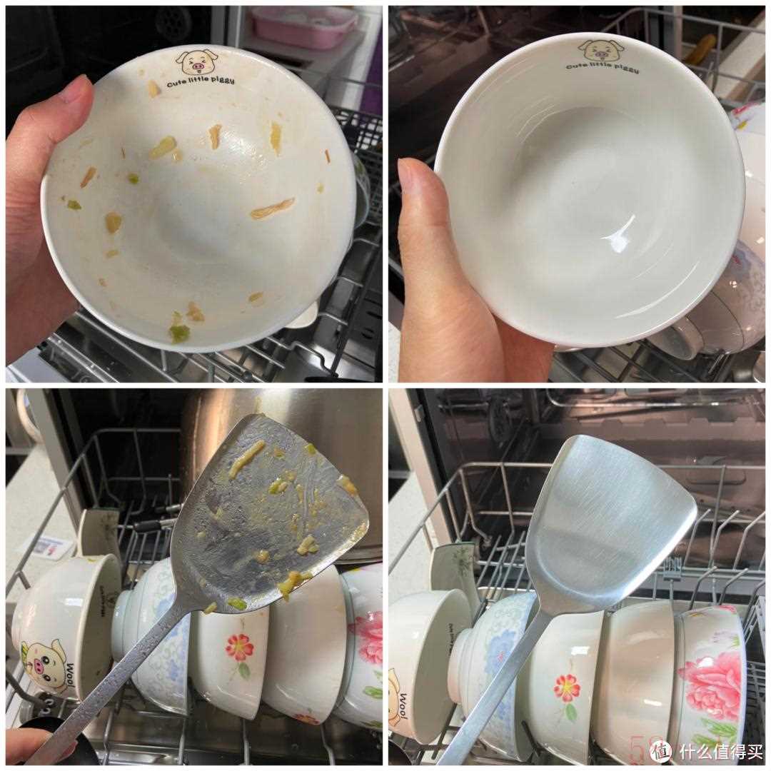 我使用20分钟快洗程序,可以看到清洗效果还是很明显的,不仅油渍、残渣统统洗掉了,碗和铲子还恢复了出厂的光泽。