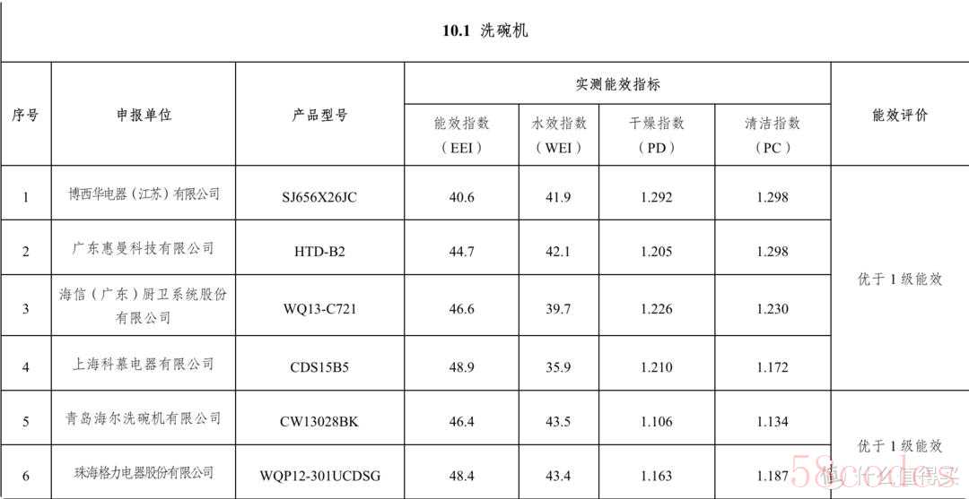 另外,国家工信部今年12月9日发布了 《“能效之星”装备产品目录(2021)》公告,目录中入选“能效之星”的洗碗机仅有6款,可以看到这6款的能效指数、水效指数、干燥指数、清洁指数都远超1级标准,能够获得了“能效之星”产品,大家自行了解即可,就不过多介绍了。