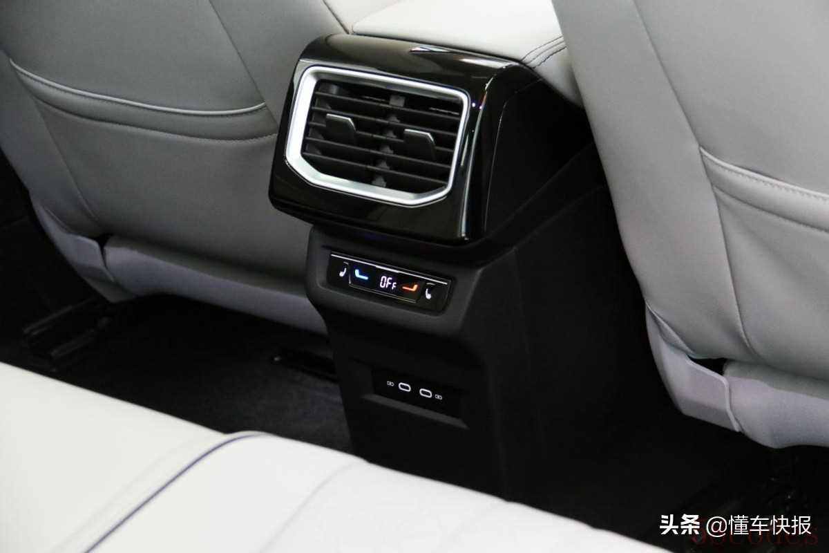 得益于换挡旋钮设置在了仪表盘旁边,前排中间有着丰富的储物空间,并且带有手机无线充电功能和充电接口。将储物格盖板盖上后,车内非常整洁。