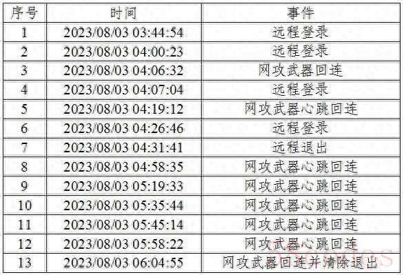 2023年4月11日至8月3日,攻击者利用匿名通信网络节点远程登录办公计算机共80余次,并以该计算机为据点探测授时中心网络环境。