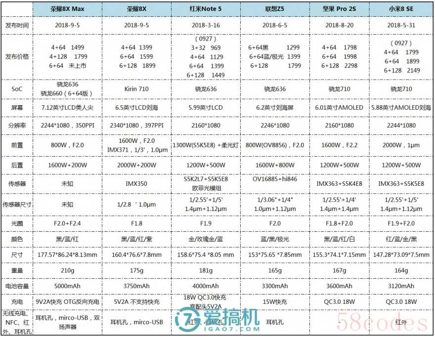 荣耀8X、红米Note 5、联想Z5、坚果Pro 2S参数对比