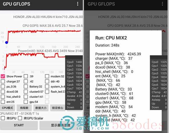 MIX2 模式单烤 CPU,荣耀8X在 2 分钟左右开始出现明显的降频,3 分钟之后小核就掉到 1.5G,大核在 1.8-2.2G 之间徘徊。有趣的是,荣耀8X这个时候机身并不热,只是 SoC 部分稍有温手而已,这个持续性输出的控制,可以说是很保守了,给双 Turbo 留了很多空间的样子。