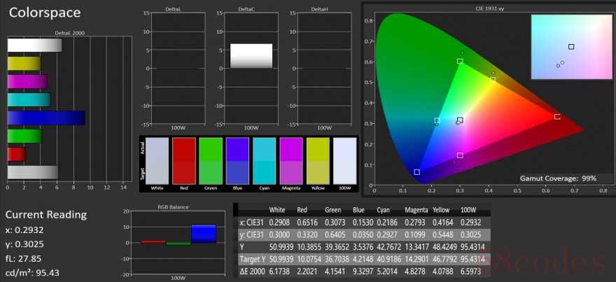 - 覆盖99%sRGB色域,82.4%的P3色域;