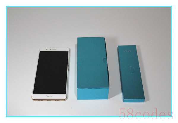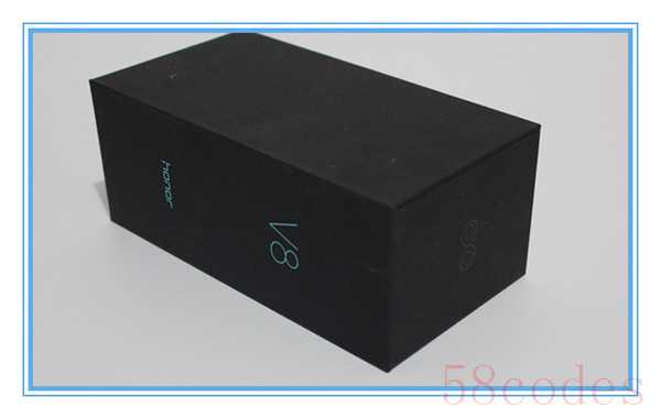 包装的侧面刻有简单明了的honor(荣耀)铭牌和V8型号,这次的蓝黑搭配的确高档了不少。