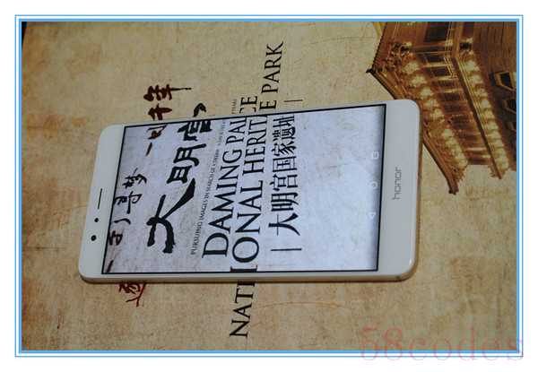 正面还是荣耀一直的设计,听筒、前置摄像头、光暗传感器、荣耀logo