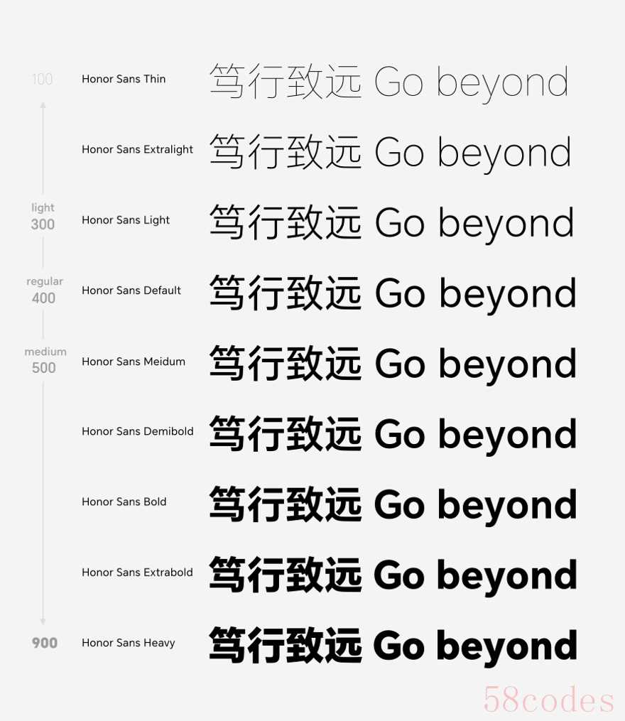 HONOR Sans 是一款由荣耀公司推出的中英文免费字体,也是旗下手机系统 MagicOS 的内置字体。下面称荣耀字体,是荣耀联合方正字库一起打造,支持9种字重和中宫双重无极可变的字体,适合用于正文文字的排版。