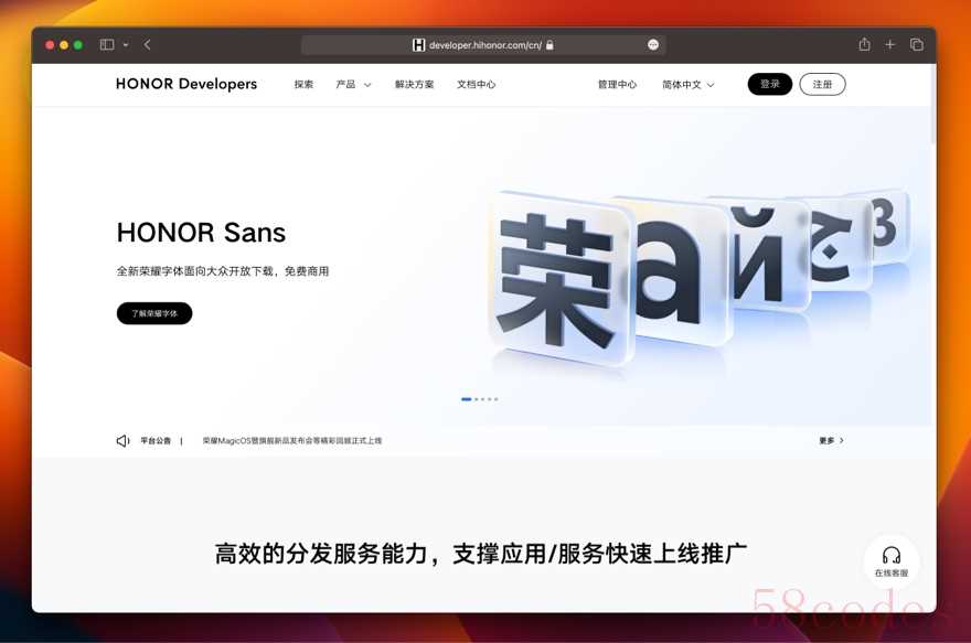 不过,荣耀字体目前并没有专门的发布官网,目前只在荣耀开发者中心的首页轮播图上有所展示,点击「了解更多」去下载需要注册荣耀账号,我还是整理了在网盘方便各位取用。