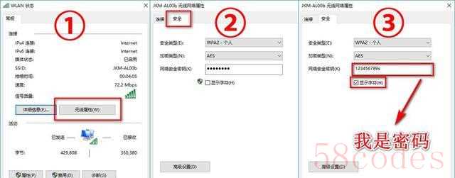 老路径:控制面板→网络和共享中心→更改适配器→状态→无线属性→安全→显示字符,点一下,密码像害羞的小姑娘,掀开面纱。