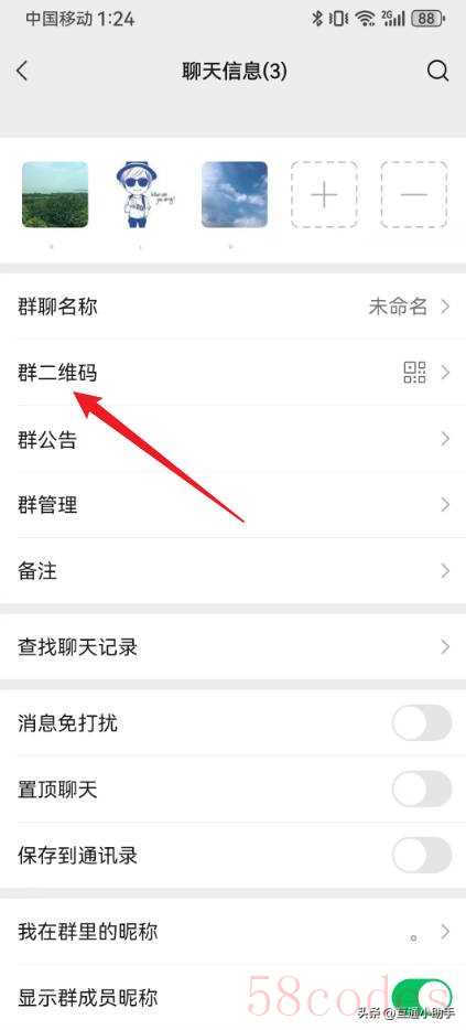 - 点击群聊界面右上角的“...”或“更多”选项。