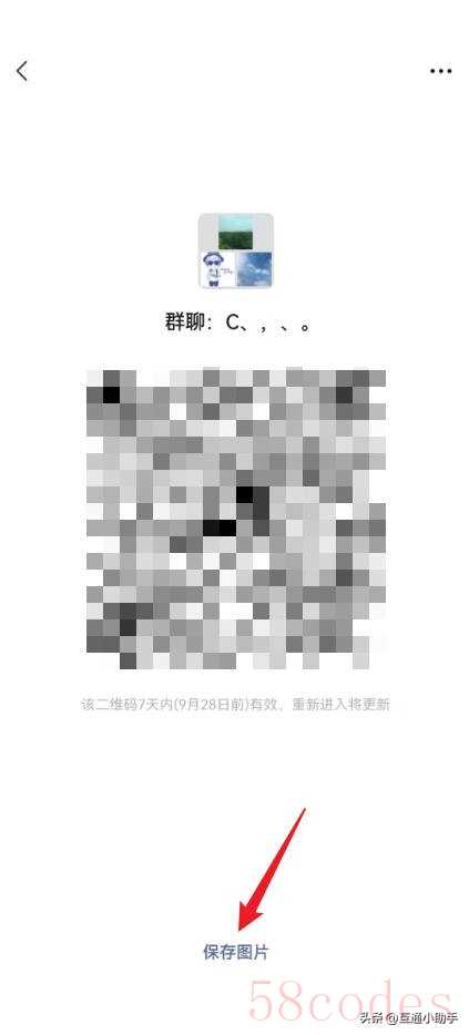 3、进入到群二维码页面,点击“保存图片”进行分享群聊。