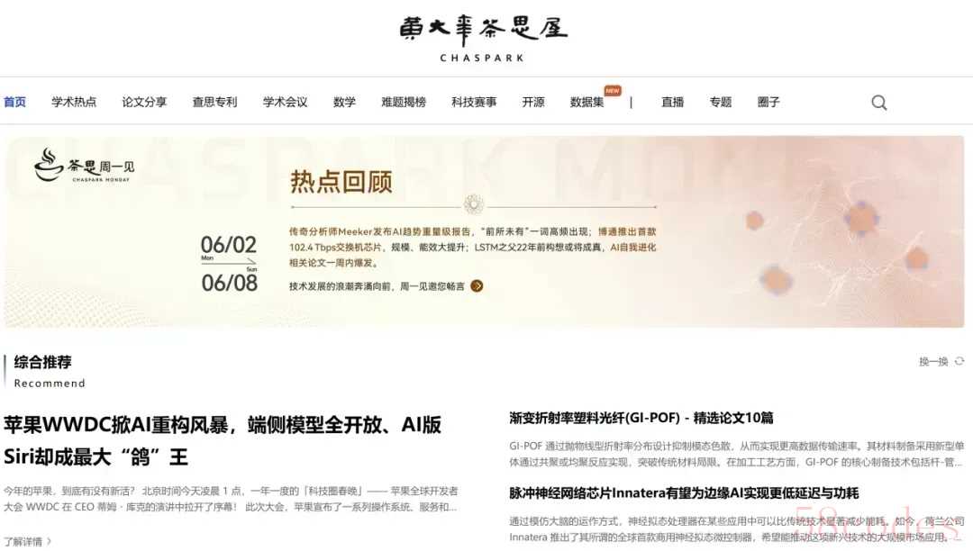 任正非在访谈中提到,华为搭建的“黄大年茶思屋”非盈利网络平台,免费供公众查阅世界的科技信息。图源:“黄大年茶思屋”官网