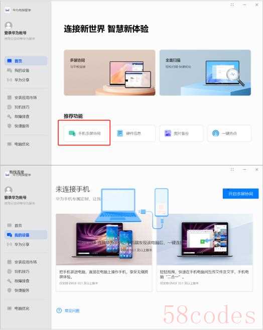 "华为手机助手 (HUAWEI PC Studio) / 手机多屏互动 (HUAWEI Mobile Services - HUAWEI Connect for PC部分功能):"