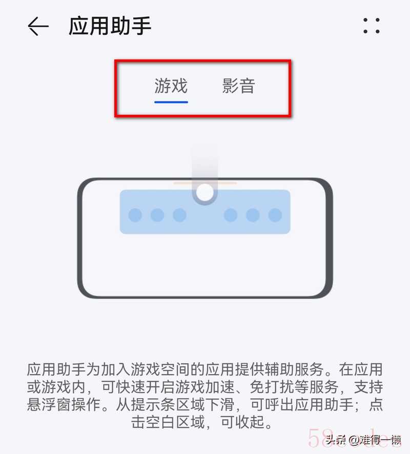 现在,在应用助手主页可以选择游戏和影音。不同模式下实现的功能会有差异,但是,操作方法是相同的,开启之后在应用主页上方提示条位置向下滑动,这样就会划出下拉界面,功能按键在这里会显示,然后选择设置使用的功能。