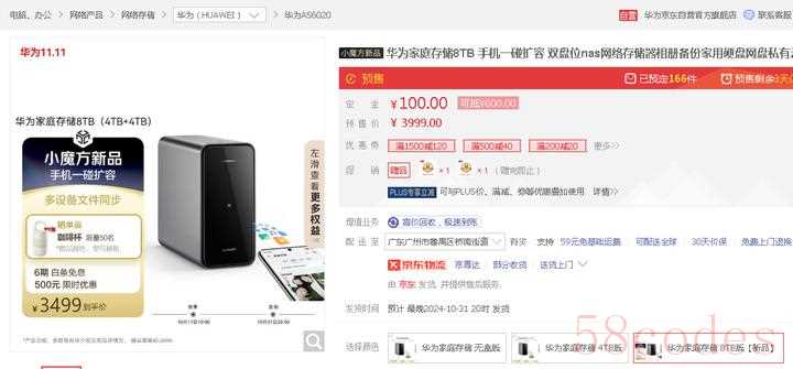 经过筛选,我准备入手今天要介绍的主角-华为家庭存储。双11期间,华为家庭存储新上线了8TB版本,至高能优惠700元。价格上面来说,是非常香的。