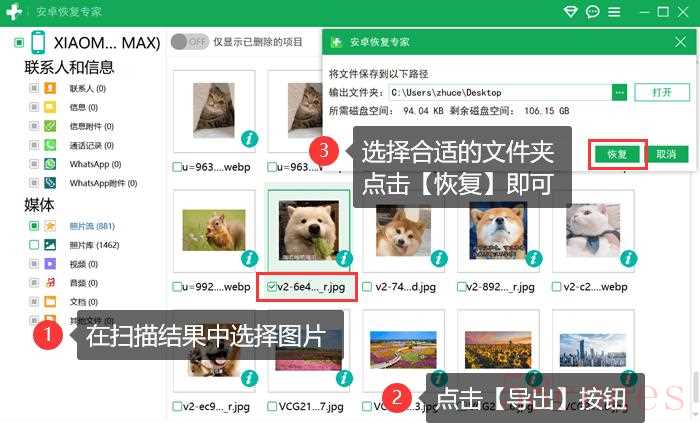 6. "预览并恢复照片:" 扫描完成后,软件会列出所有找到的已删除照片,你可以预览它们,然后选择你想要恢复的照片,点击“恢复”按钮。