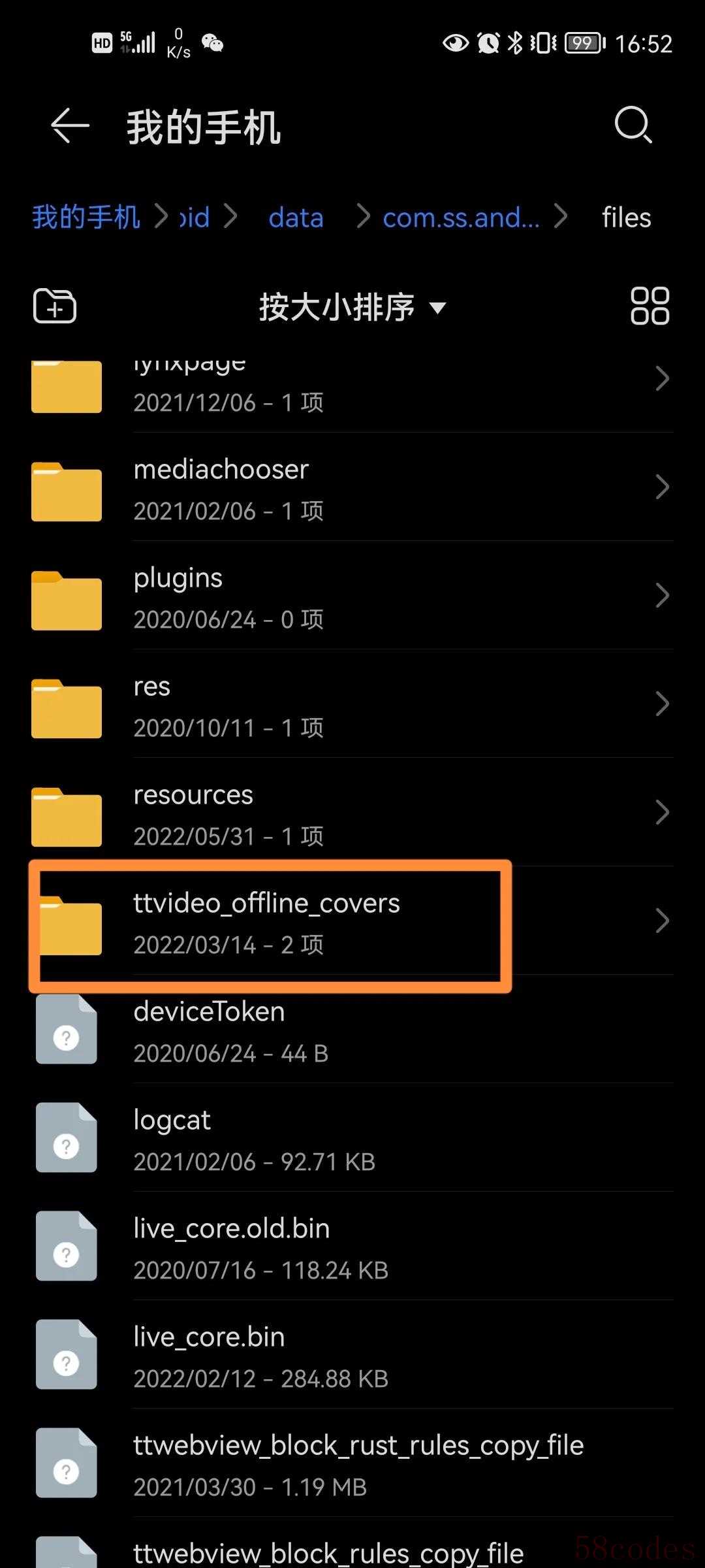 第七步:找到文件夹“ttvideo_offlione_covers”,并打开。