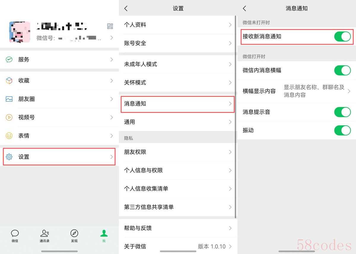 敲黑板划重点了!我们回归微信APP本身,在应用内一定也要打开设置 - 消息通知 - 接收新消息通知,不然也是收不到微信消息的!