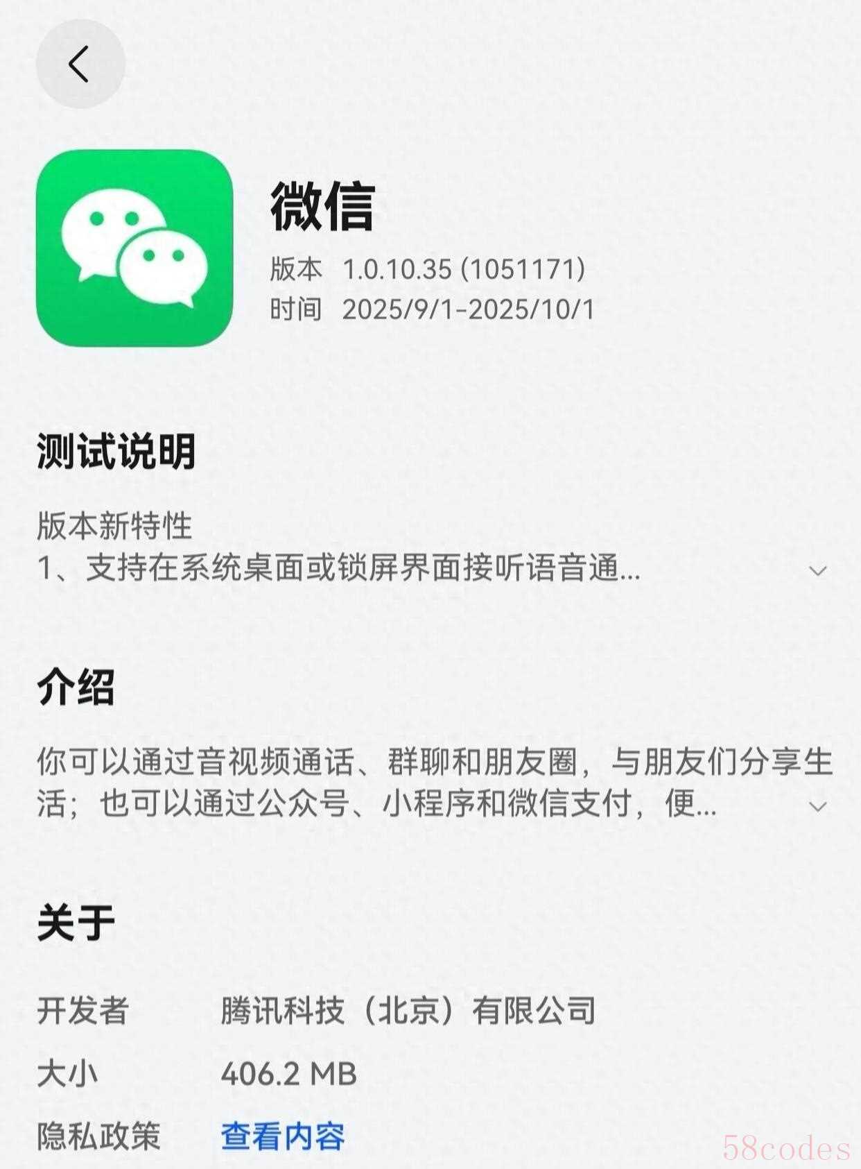 昨晚,华为应用市场悄悄推送了微信鸿蒙版1.0.10.35版本的测试,测试时间为9月1日至10月1日。 此次更新主要以修复已知问题为主,同时新增了锁屏接听语音通话、识别图片中多个二维码等实用功能。 目前安装量已突破1400万次的微信鸿蒙版,正在加速完善其功能体验。