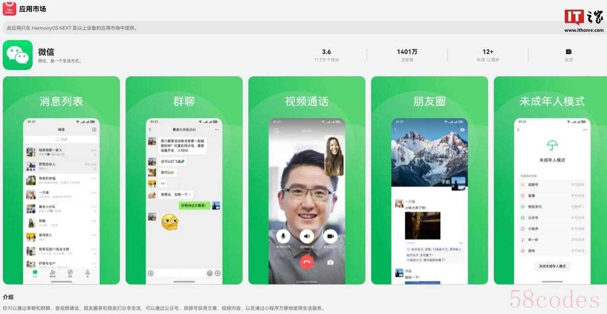 微信鸿蒙版App于今年1月正式上架华为应用市场App Gallery。 目前,它已支持基础通讯、社交、微信支付、公众号、小程序、视频号、直播等主要功能。
