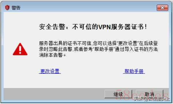 安全警告,不可信的VPN服务器证书