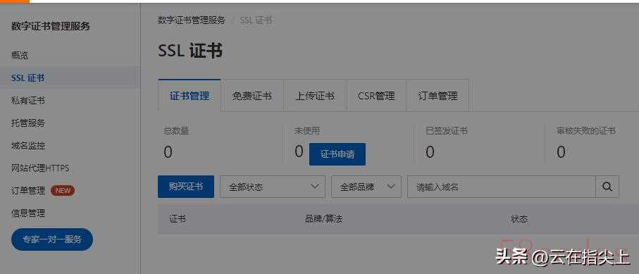 - 去证书服务商购买SSL加密证书,比如去阿里云,后面附了一些可参考的图