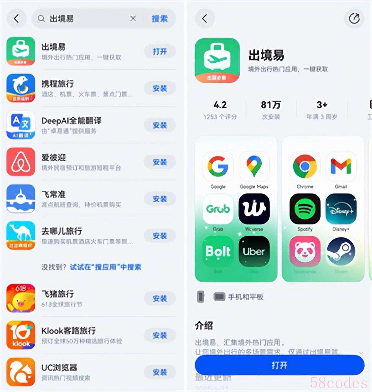 解决了上网问题,其次要解决的就是使用海外APP的问题了。想在国外查找美食景点,查看出行路线,但却无法下载/使用相关应用?华为应用商店可以搜索到出境易App,出境易首页即可看到各类海外热门应用,无论是社交类的Ins、FaceBook、X,还是出行类Google Maps、Uber,都能够在这里找到。并且,出境易还根据地区、类型,贴心地为大家给App进行了分类,能够让大家快速Get当地热门或主流应用。
