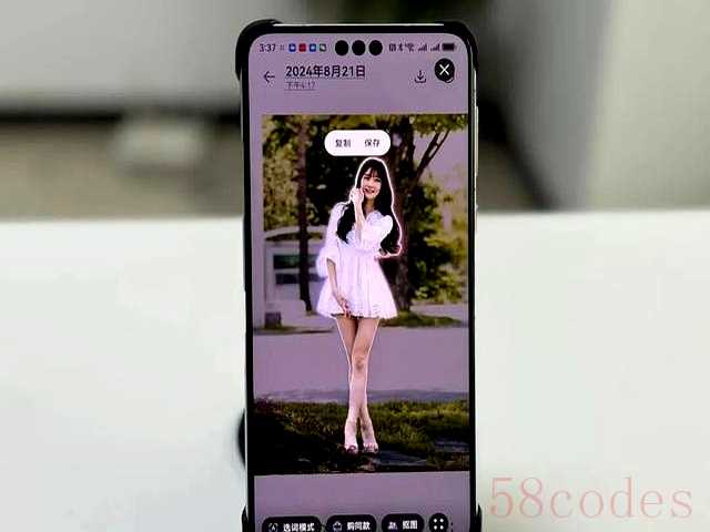 打开照片,长按人像两秒,边缘被发丝级识别,一键保存为透明PNG。