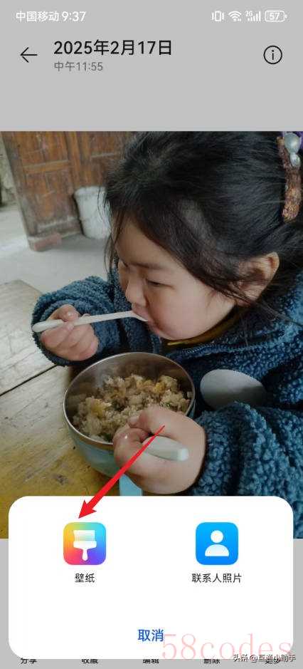 或者,有些手机在全屏预览界面"直接"就显示了设置壁纸的快捷按钮,通常是一个"向上的箭头"或者带有“设置壁纸”字样的图标。