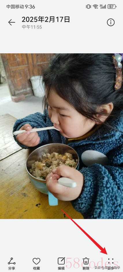 1、打开华为手机,进入到要设置壁纸的照片页面,点击“更多”。