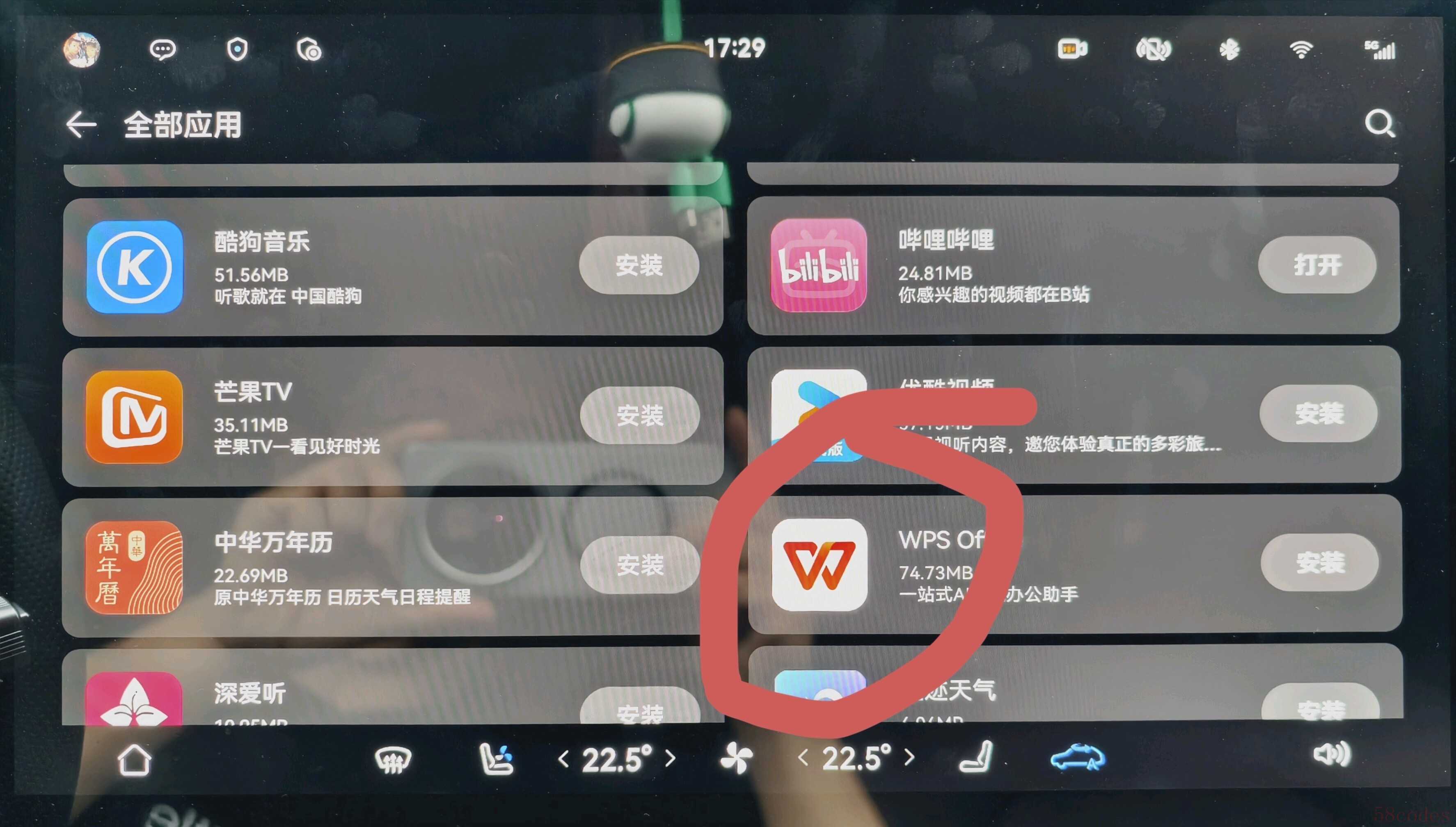 2.然后在车机端,应用市场里面找到 wps,安装,并登录,在共享文件夹里就能看到刚才壁纸的文件夹了