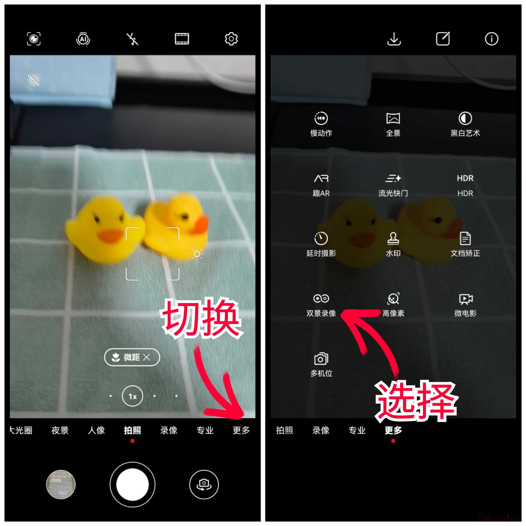 平时我们用手机录像的时候,前置摄像头和后置摄像头,只能选择一个。华为手机有一个独特的功能,可以同时使用前置和后置摄像头录像,这样就能实现画中画的效果了。