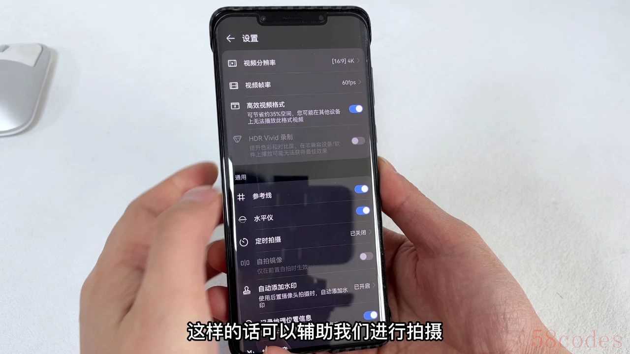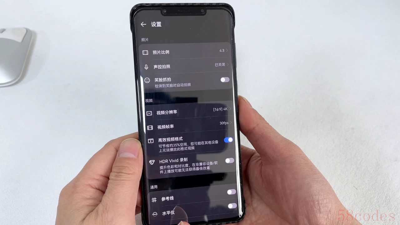 这样的话,我们所拍出的视频也会更加的清晰,而且的话有一点,拍出的视频文件是比较大的,如果你的手机内存比较足的情况下是没有问题的。然后呢,还有一点呢,是非常重要,我们接着往上滑动,大家会看到在我们通用的选项里边有一个参考线和水平仪,我们可以打开,这样的话可以辅助我们进行拍摄。