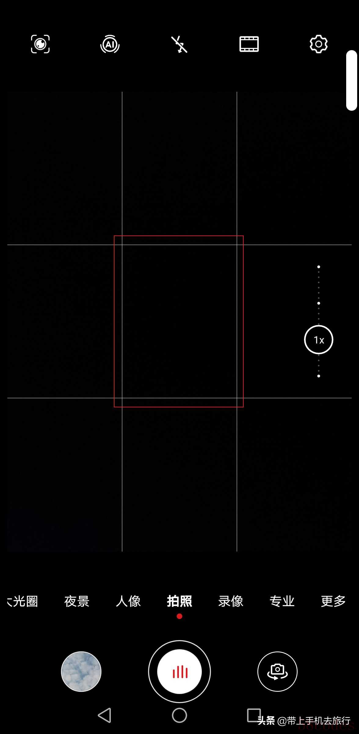 《华为手机“拍照”模式界面截屏》(默认自动对焦区域示意图)