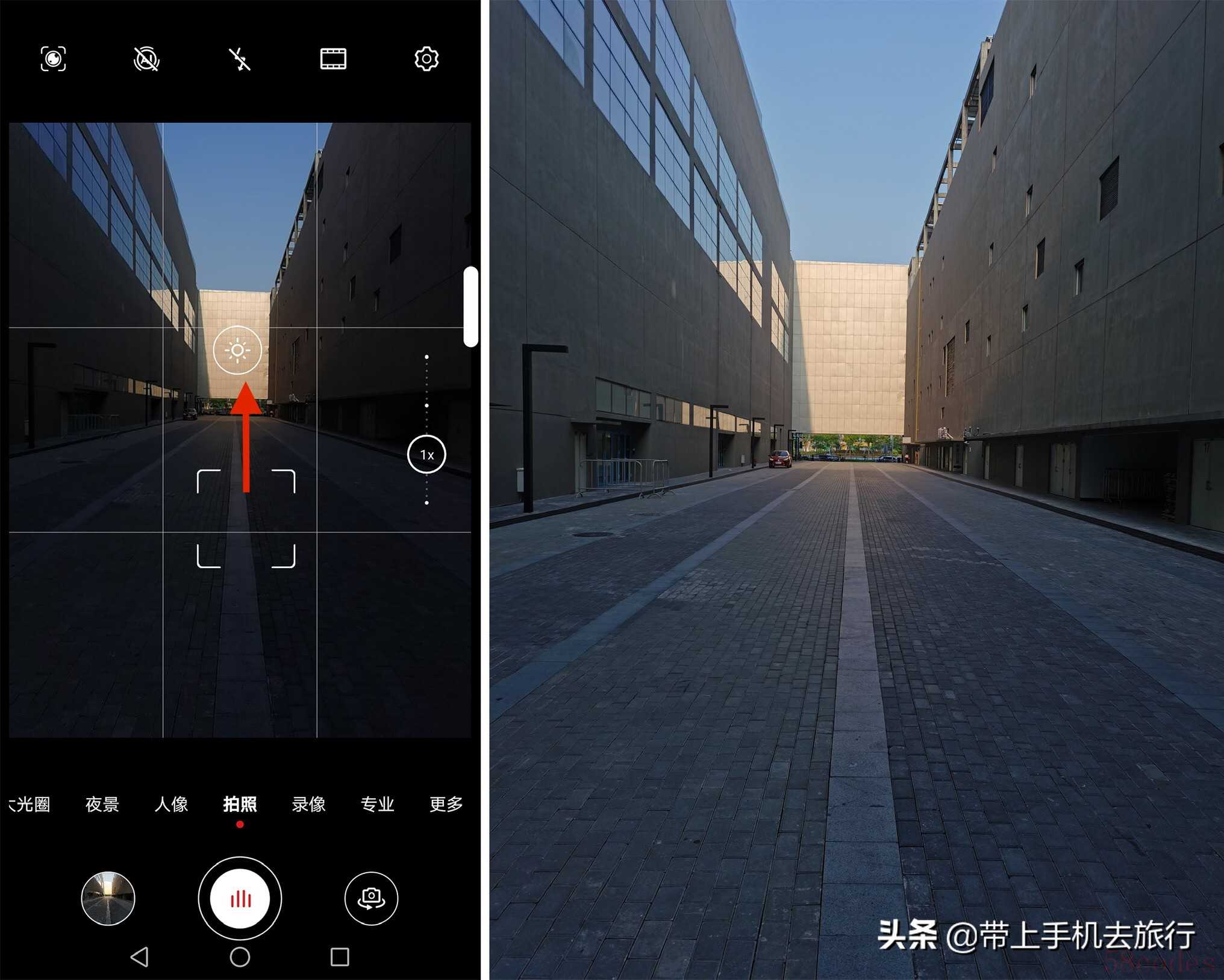 如有必要,也可在点按快门拍摄前按住白色太阳标志上下滑动,对曝光量进行正补偿(向上滑动,增加曝光量)和负补偿(向下滑动,减少曝光量),会同时显示具体量化指标,曝光量(画面亮度)会跟随变化并实时显示,进而实现更为精准的曝光。