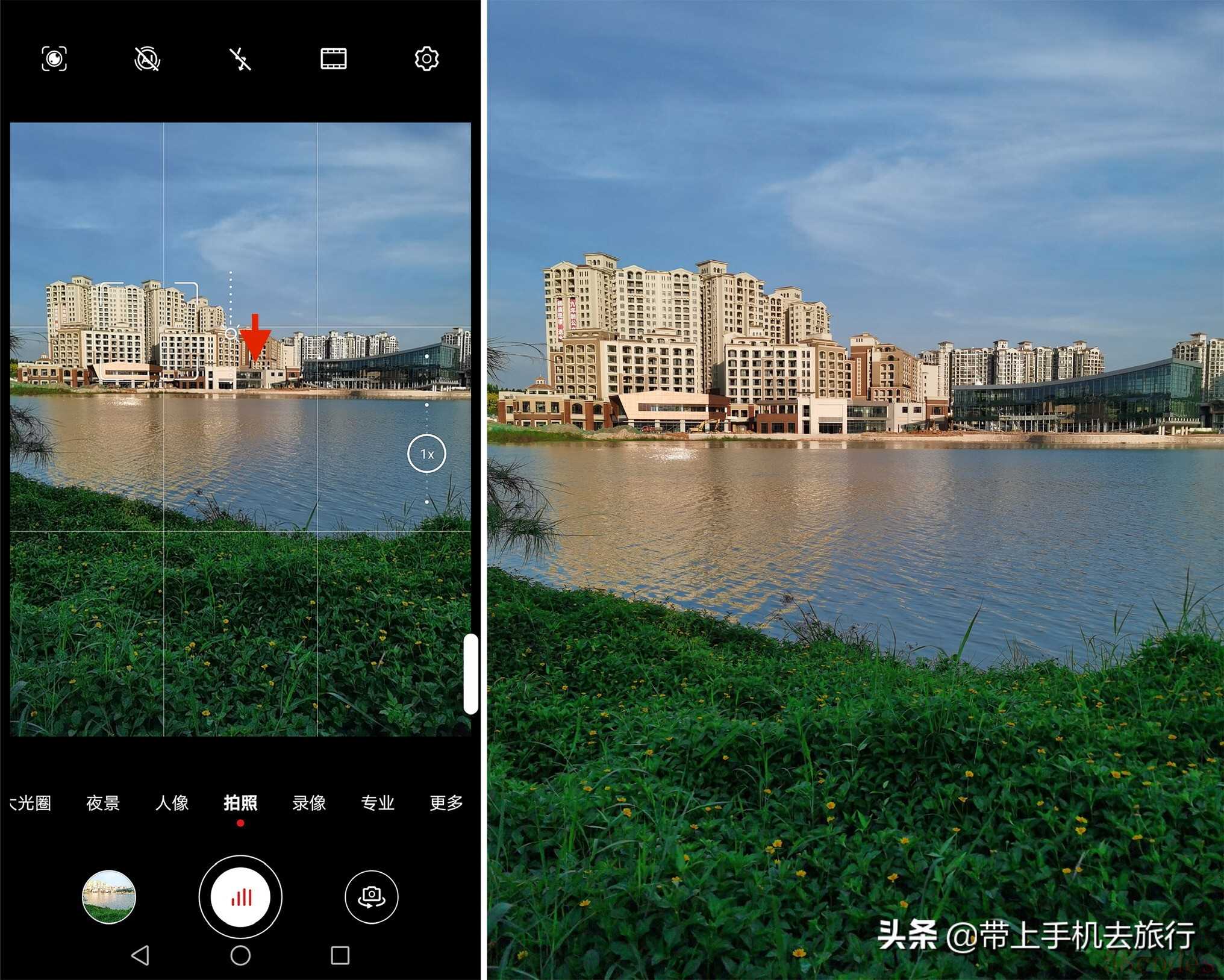 《美林湖畔》(“拍照”模式界面(直接点按快门拍摄)截屏与拍摄效果拼图)