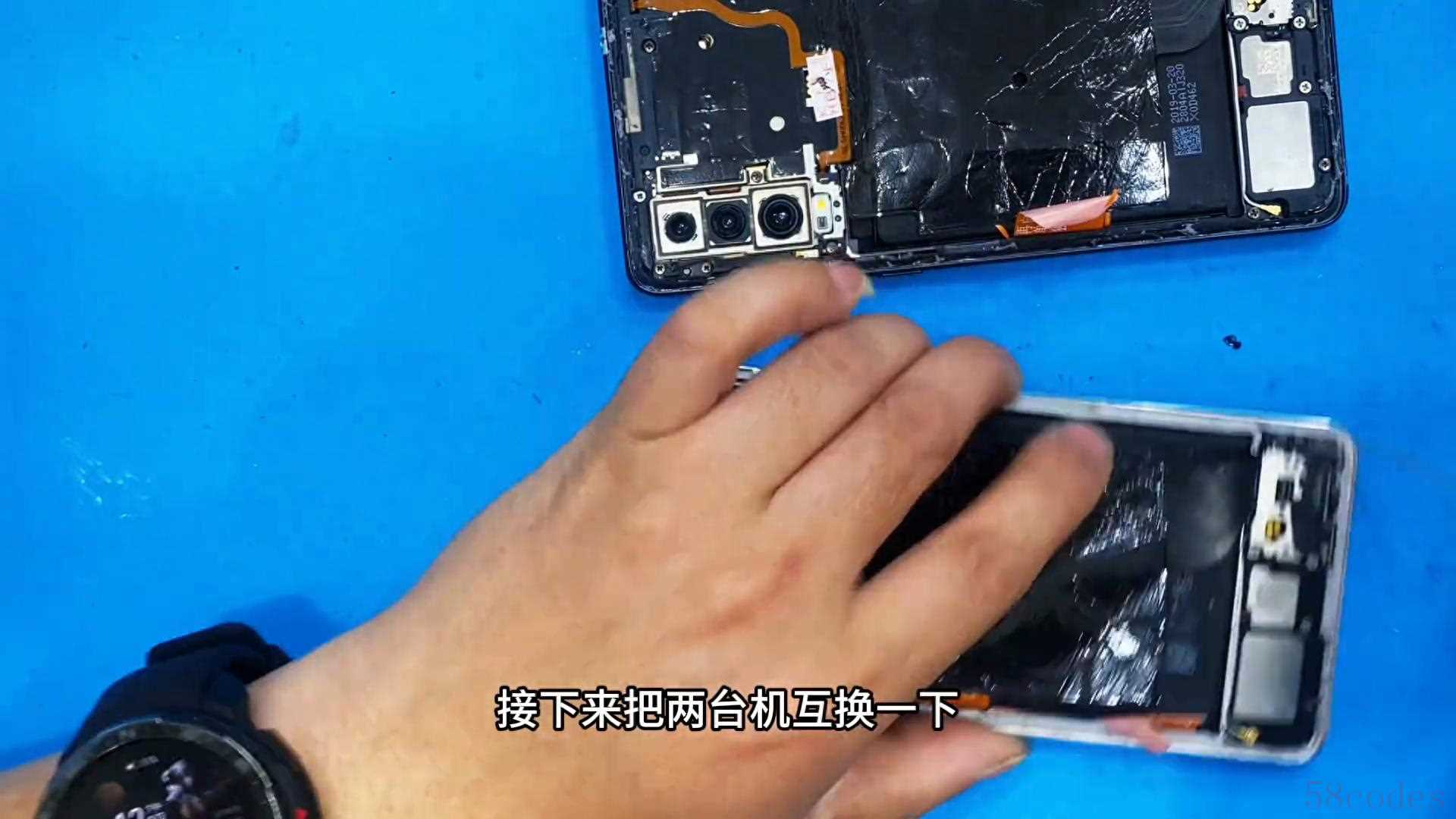 这是粉丝机的两台p30,粉丝描述一台主板有问题,一台屏幕有问题,他让我把两台机合并成一台。刚刚看了一下两台机的情况,白色的机屏幕是好的,黑色的机主板有问题。接下来把两台机互换一下,接下来看我是怎么操作把它给组装成一台机的。