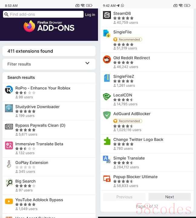 安卓版 Firefox 浏览器用户可以安装 SponsorBlock、SteamDB、SingleFile、Old Reddit Redirect、Simple Translate、Keepa 等扩展程序,可以大大改善移动设备上的浏览体验。
