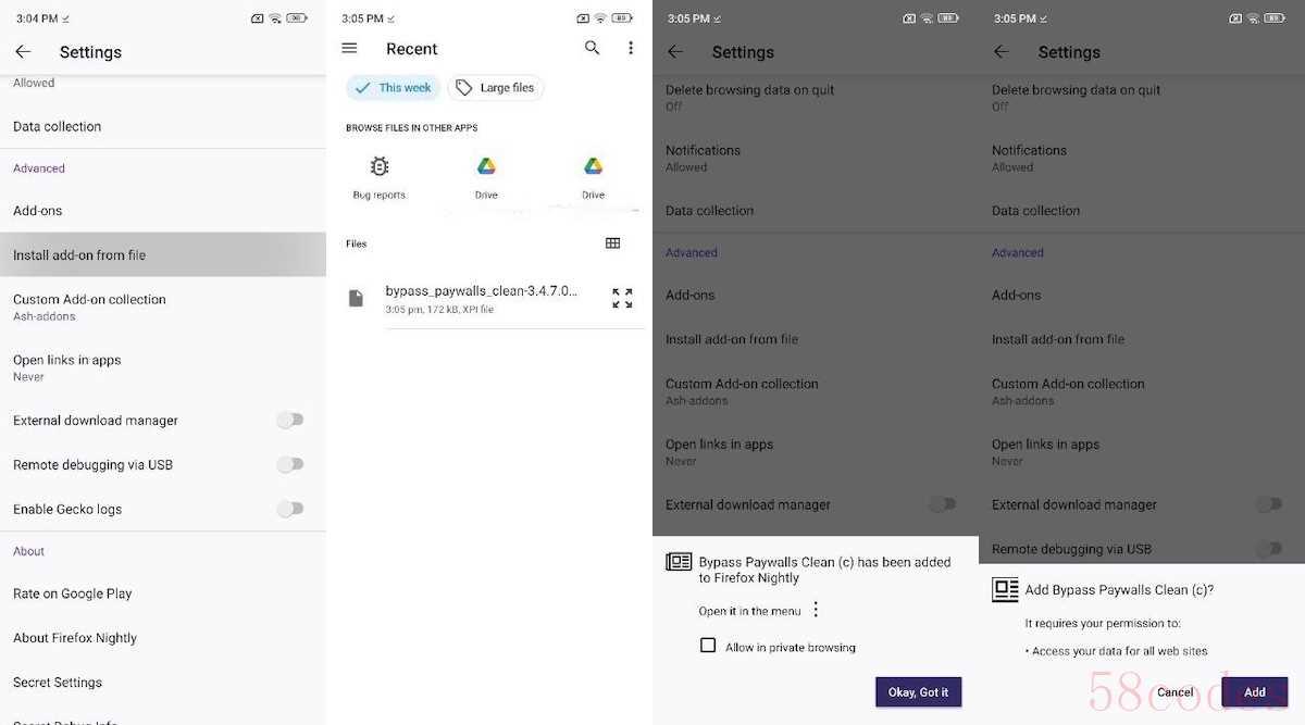 Mozilla 现在进一步扩充安卓版 Firefox 对附加组件的支持,在最新的 Nightly 版本中,用户可以通过文件的方式,安装附加组件。