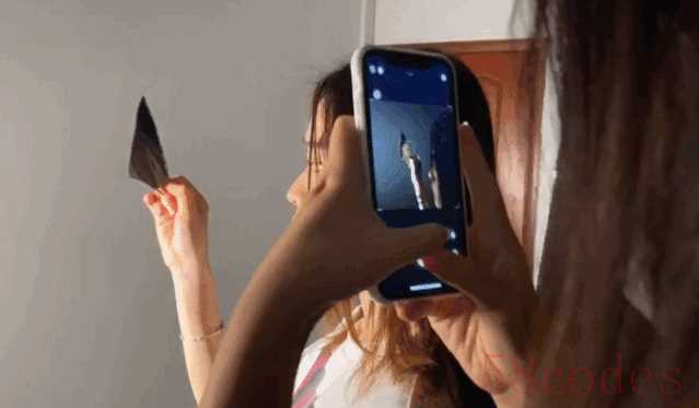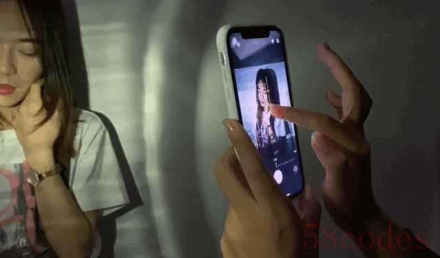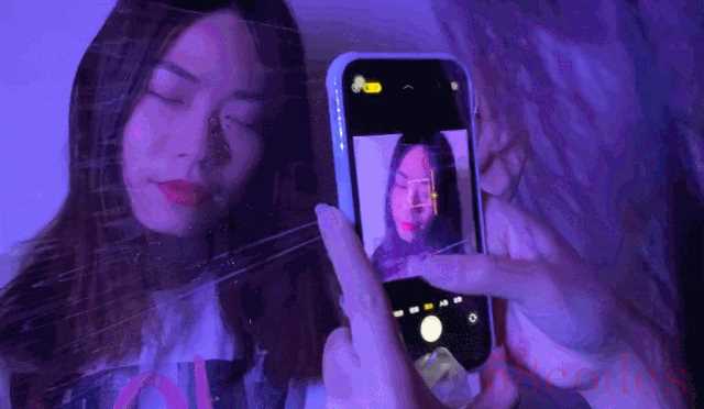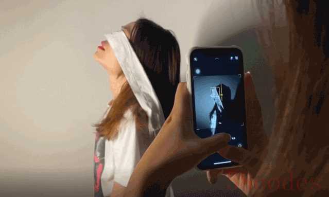 为保持镜中只有模特的脸部,拍摄者要在模特的一边进行拍摄,避免手机入镜。