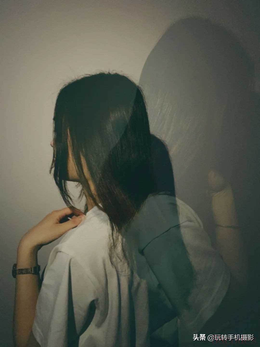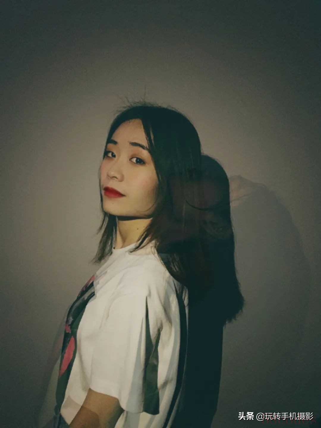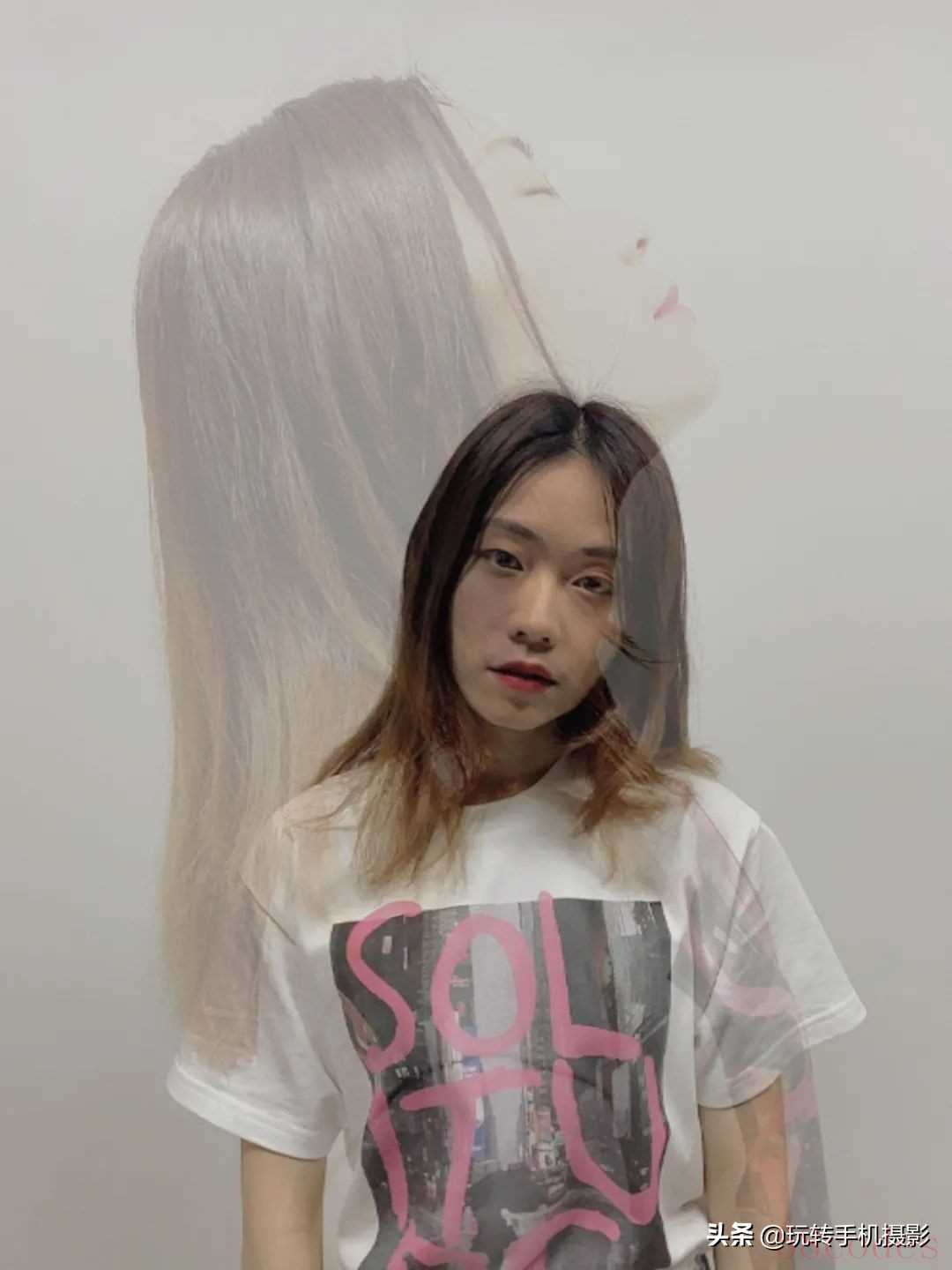 最后的一个关于白墙的创意拍摄,是利用手机的Faceu激萌拍照软件拍出双重曝光效果的人像照。