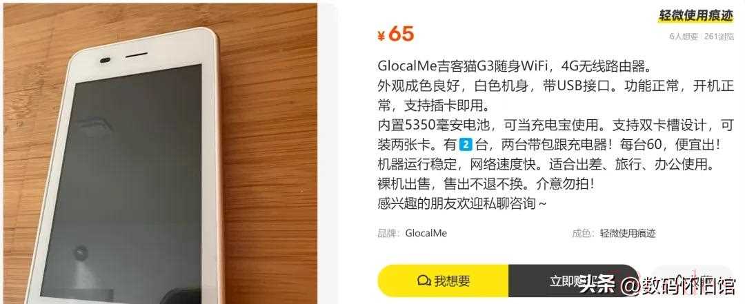 这听起来像是一个非常划算的促销活动!以65元的价格买到原价999元的全球上网随身WiFi,并且还自带4英寸大屏和支持双卡功能,确实非常有吸引力。