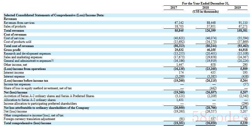从优克联所披露的招股书来看,2017至2019年,优克联的收入分别为0.86亿、1.26亿、1.58亿美元,毛利率占比分别为34.4%、36.5%、41.0%;同期内净利润分别为-1926万美元、-2611万美元、520万美元。调整后净利润分别为-1370万美元、-2430万美元、540万美元。值得注意的是,三年中有两年财务都处于亏损状态,而在2019年勉强扭亏为盈,盈利不稳。