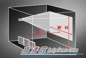 投射比=投影距离/画面宽度,即下图中的D/W;