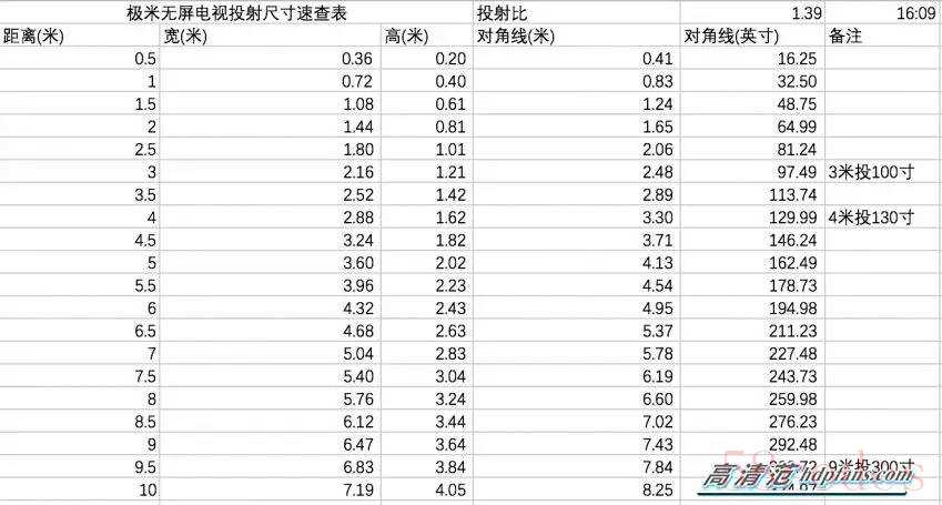 拿到智能投影,大家头疼的一件事便是投影距离的选择。很多朋友拿到后不知道合适的安装距离是多少,最后导致投影效果不佳。今天,版主就找到一份网友制作的极米H1投影距离参考表格,一起来看看!