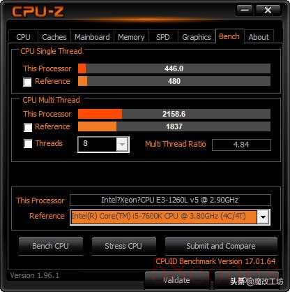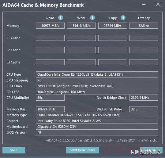 然后就是例行的理论性测试环节了,也是魔改君第一次发布E3 1260L V5在B250主板上搭配DDR4双通道内存的成绩: