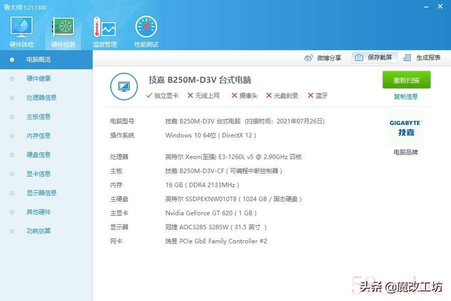 处理器依然还是那个E3-1260 V5,主板则是粉丝发过来维修检测的GA-B250M D3V。