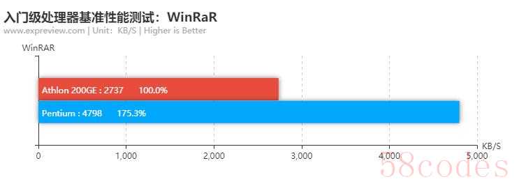 跟7z所不同,WinRaR比较看重内存延时,延时更低的产品会优势明显,这里奔腾G4560的表现确实可以说抛离速龙200GE。